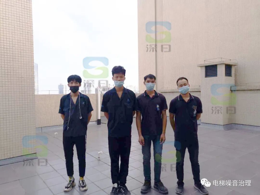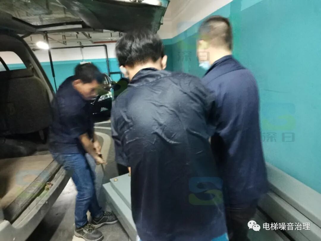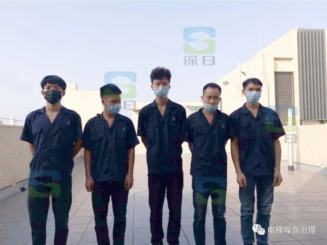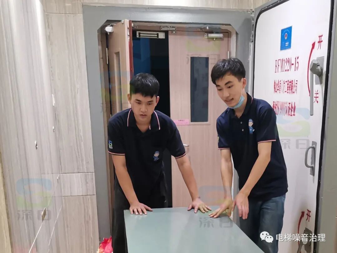 ▲这是我们的电梯降噪施工人员现场实拍,电梯降噪正在施工中,深日降噪团队操作人员分工合作、配合默契。