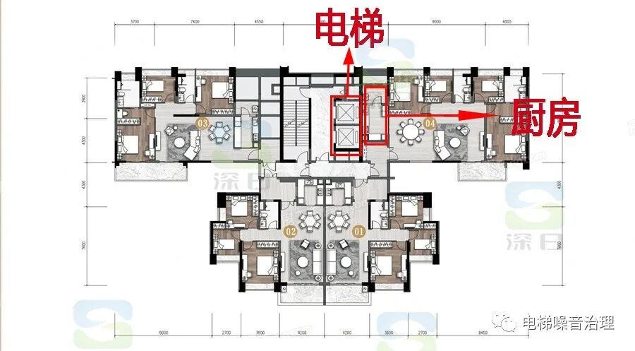 随着我国城市化的高速发展,在土地供应不足、房价越来越高的今天,房子越建越高,电梯速度也就越来越高。但基于房子户型设计的布局及如何实现套内面积最大化等客观因素影响,导致电梯与住户相邻的设计往往不可避免,由此便会带来电梯运行噪声对相邻户型房间造成低频噪声的影响。而高品质、大品牌、负责任的开发商往往会特别关注这个最容易引起住户投诉的问题,并就电梯噪声问题进行防治评估分析,采取有效降噪治理对策。